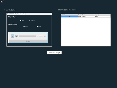 TALK is an online streaming radio station where the requirement was to play it across social community sites, such as retail outlets, food joints and many connected organizations.